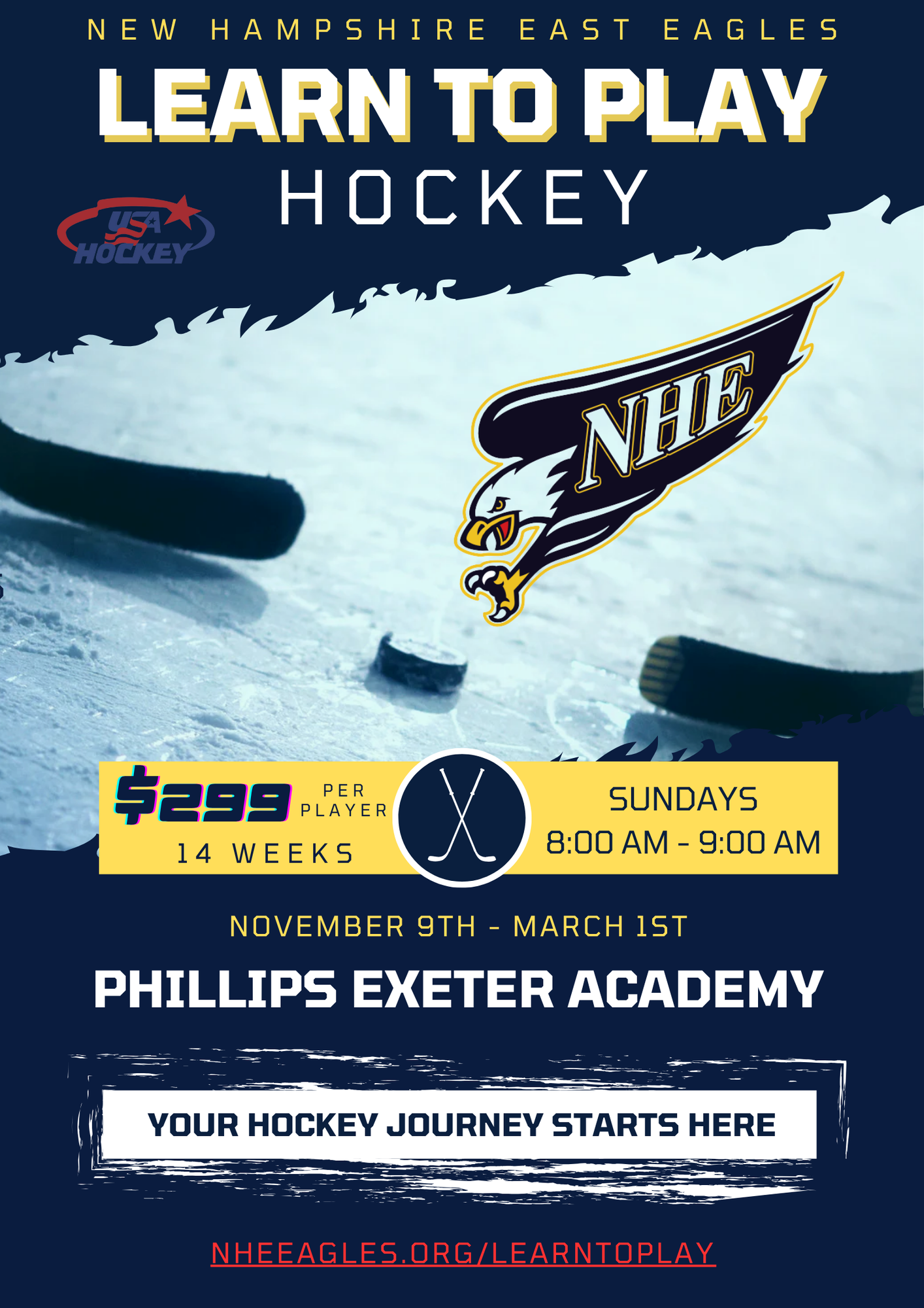 All NHE Learn to Play practices will be held at Phillips Exeter Academy Rinks